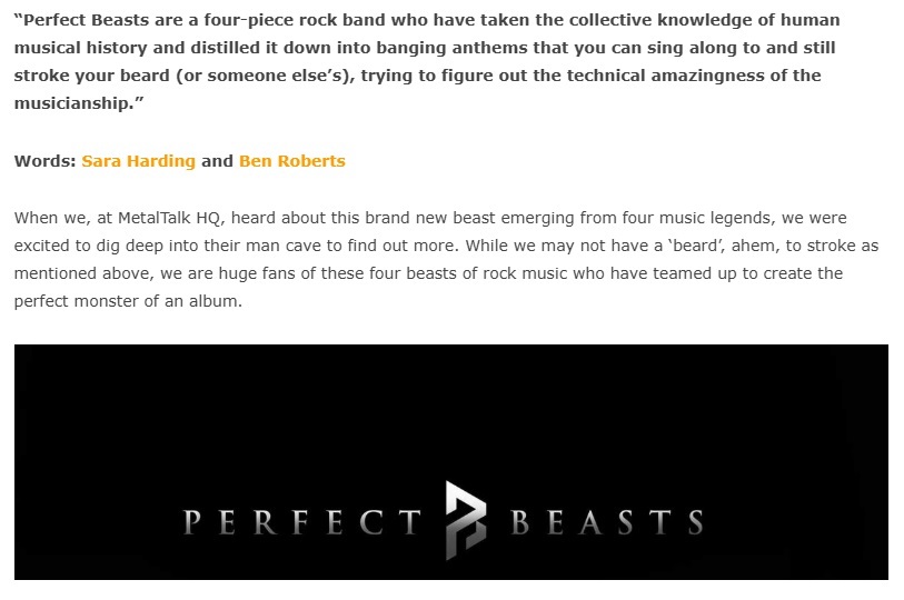 Perfect Beasts is an album that refuses to play by the rules. Its songs are adventurous yet accessible, driven by emotive, primal vocals and guitar sounds unlike anything heard before - thanks in part to the use of cutting-edge synth guitar and modern music technology.